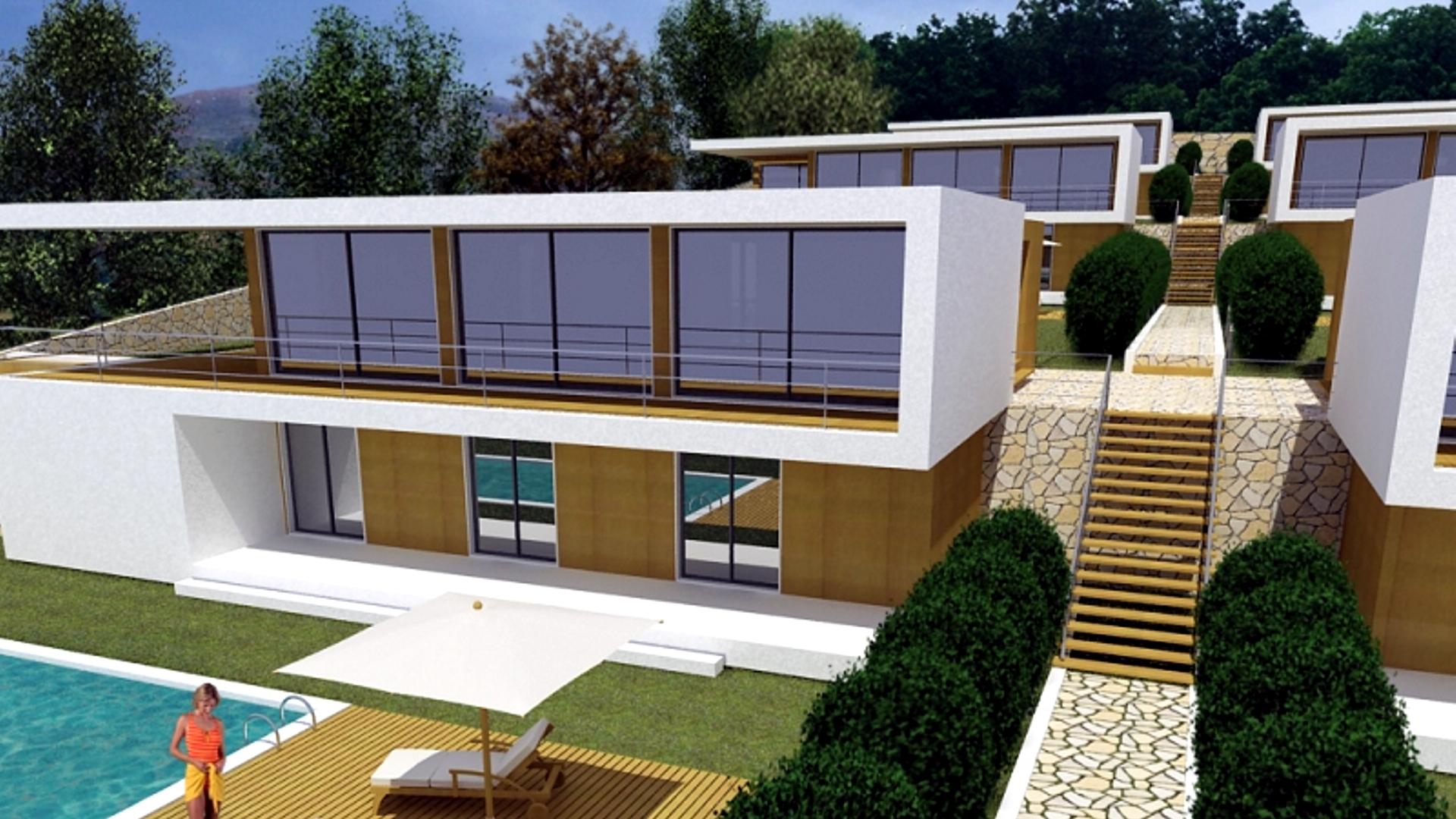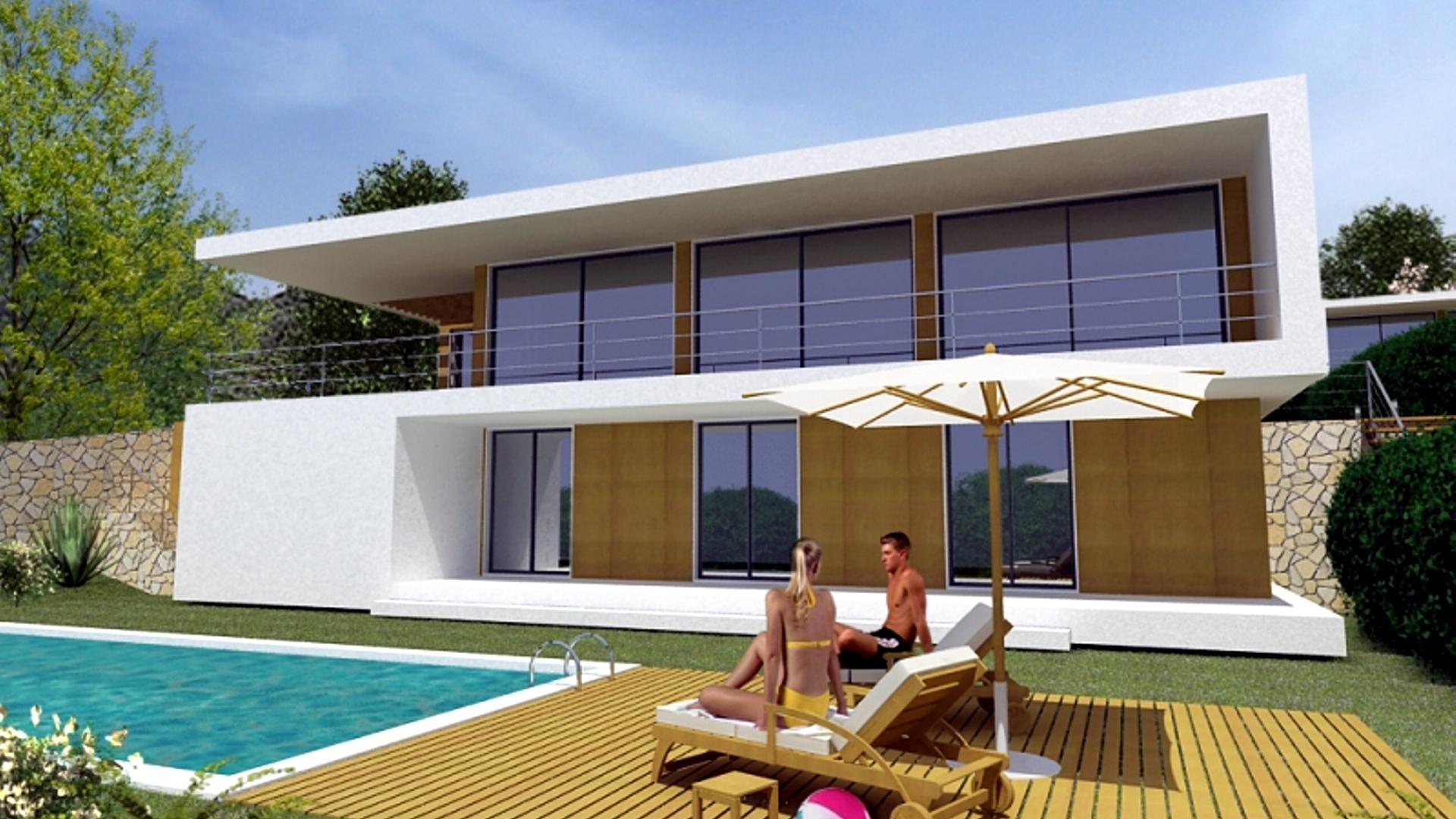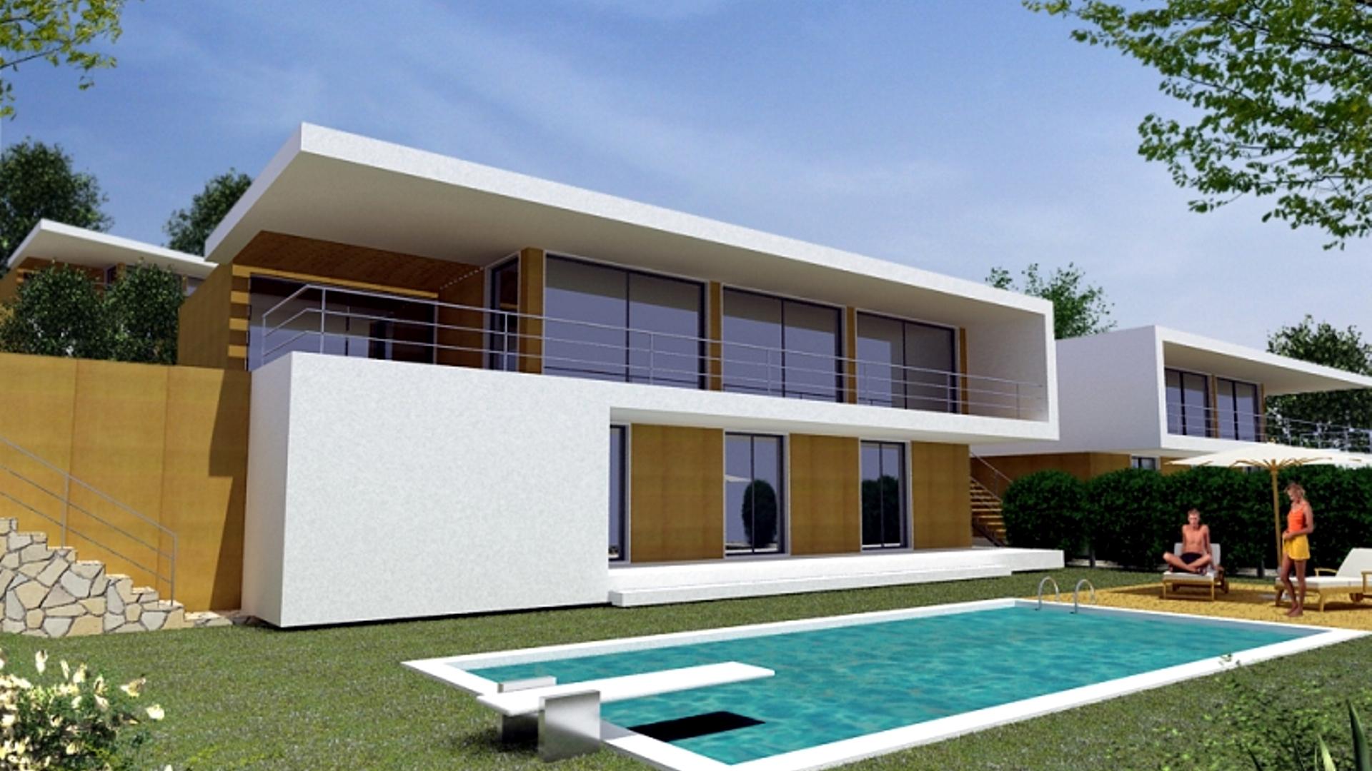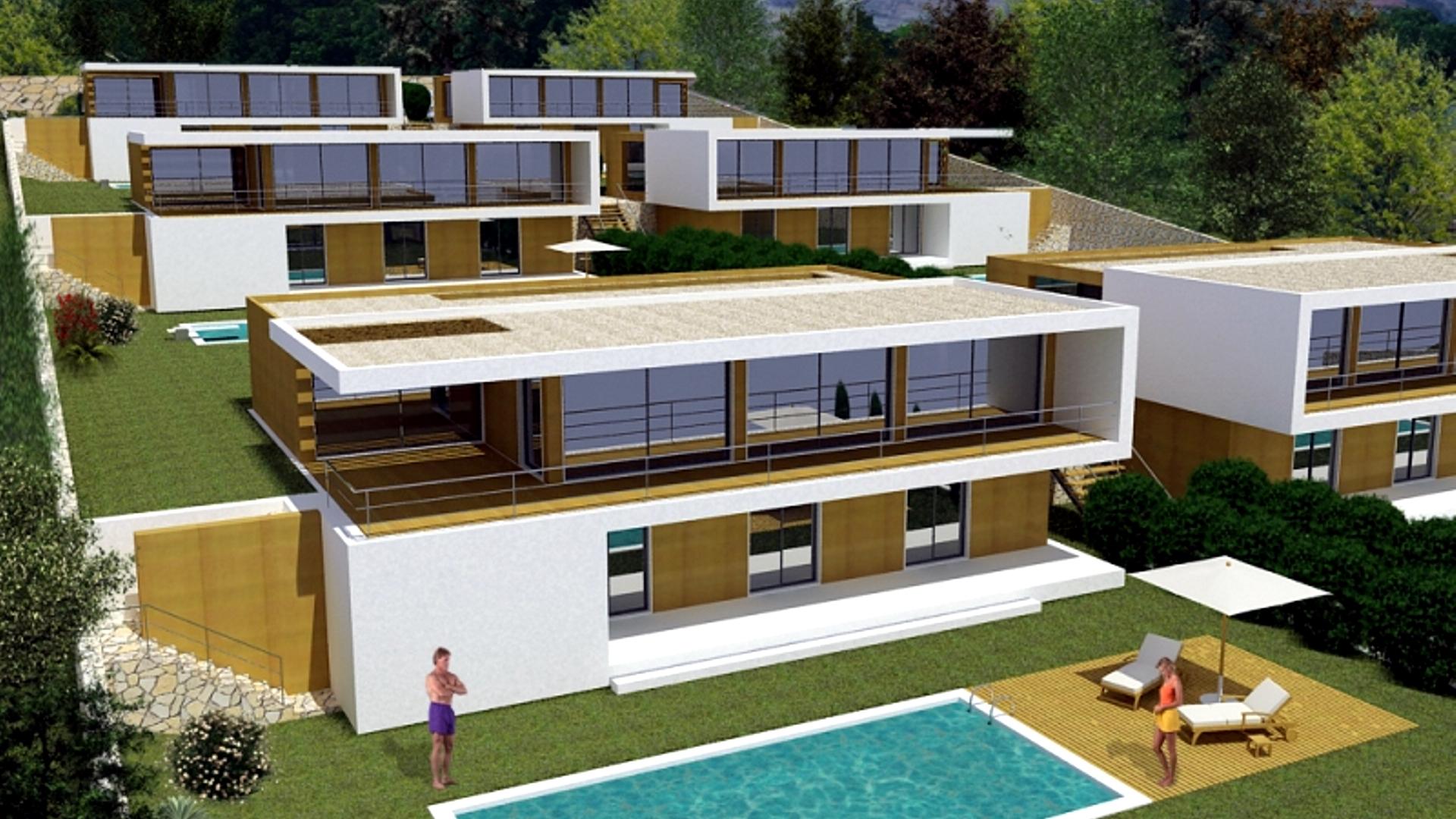 Este conjunto de moradias implanta-se num terreno de pendente assentuada e com uma excelente vista de mar.